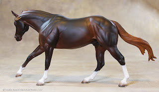 I am a huge fan of well-done customizing. To me, not only does the customizing have to be realistic, correct anatomically, and done with professional caliber, it has to "match the piece." It has to be changed, but remain the same if that makes any sense. How Jennifer managed to take a horse that was meant to be a British Heavy Show Cob and turn him into a cute little show pony and keep him ultimately the same horse I can't put into words, but she did just that.